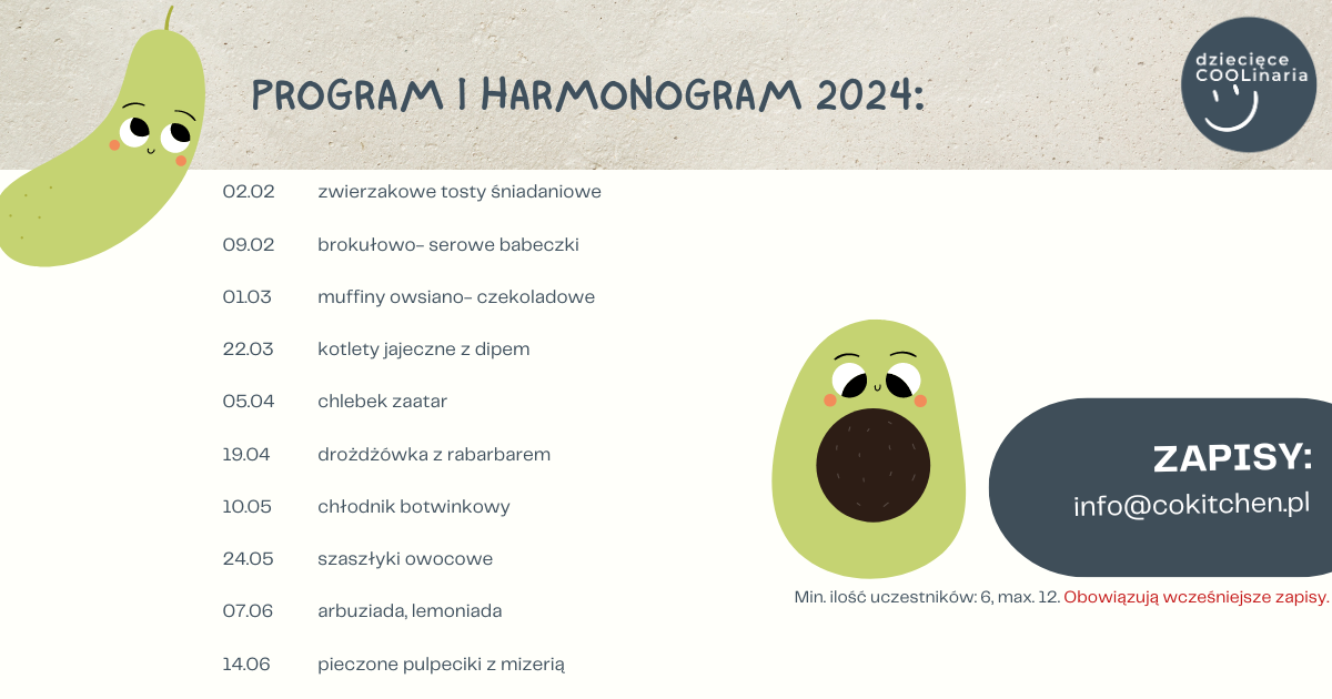 Sprawdź program warsztatów kulinarnych dla dzieci.